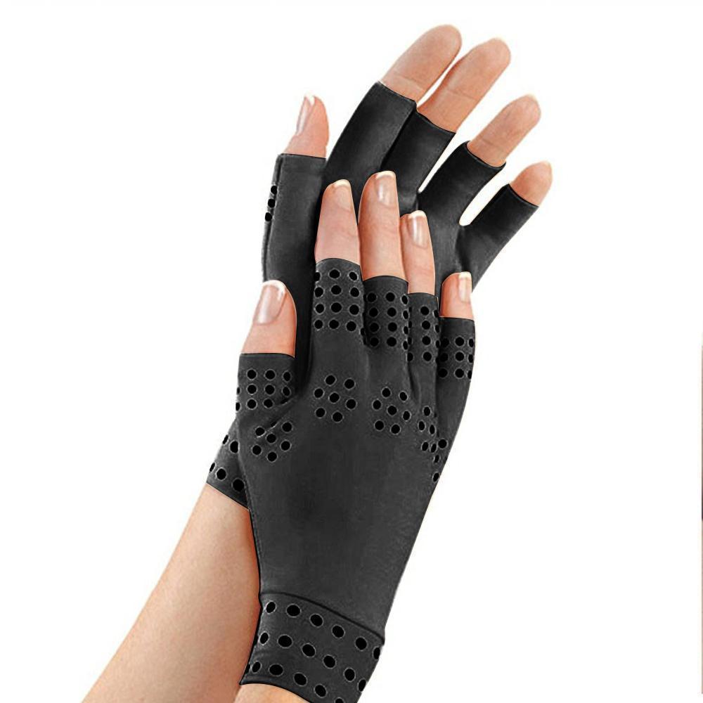 Luvas sem dedos, design leve, que te ajudará nas atividades diárias, melhorando a circulação. Estas luvas possuem pequenos ímãs sobre os nós dos dedos e pulsos que são projetados para ajudar aliviar a dor nas articulações artríticas.